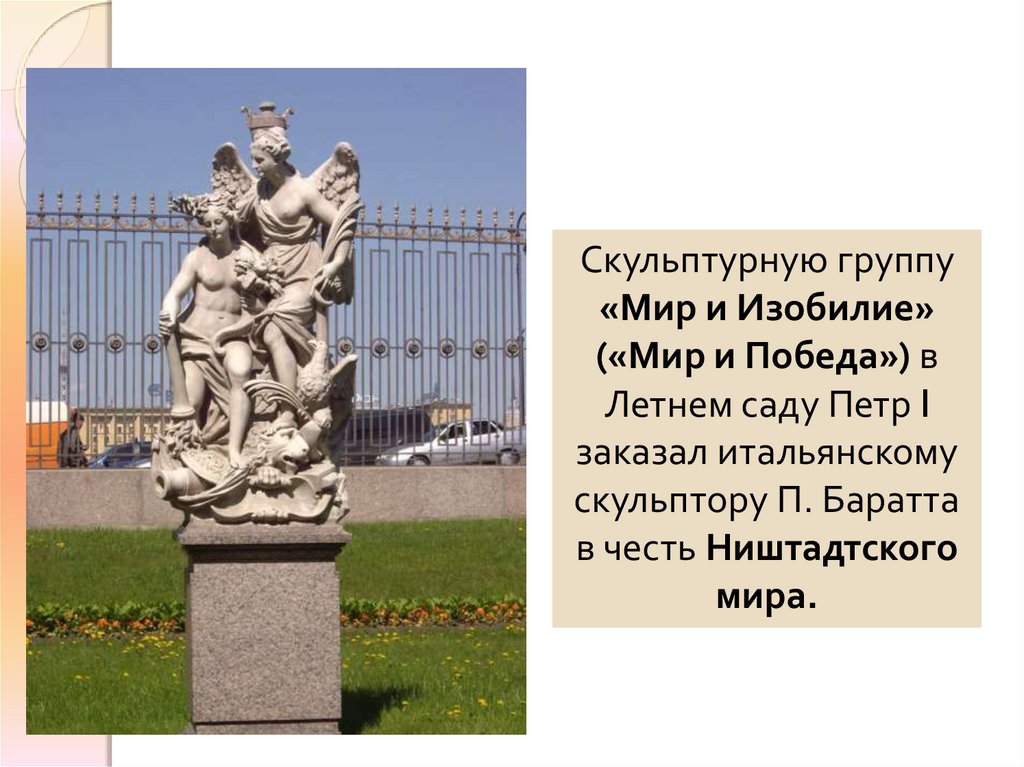 Скульптурную группу«Мир и Изобилие»