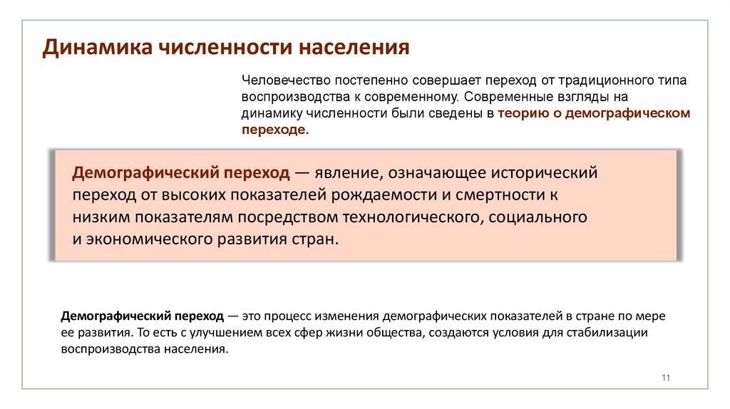 Динамика численности населенияЧеловечество постепенно совершает переход от традиционного типа