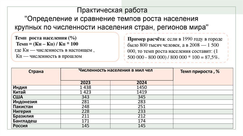 1. ЧИСЛЕННОСТЬ НАСЕЛЕНИЯ МИРА. ТЕОРИИ ДЕМОГРАФИЧЕСКОГО ПЕРЕХОДА. ВОСПРОИЗВОДСТВО НАСЕЛЕНИЯ, ЕГО ТИПЫ. Практическая работа