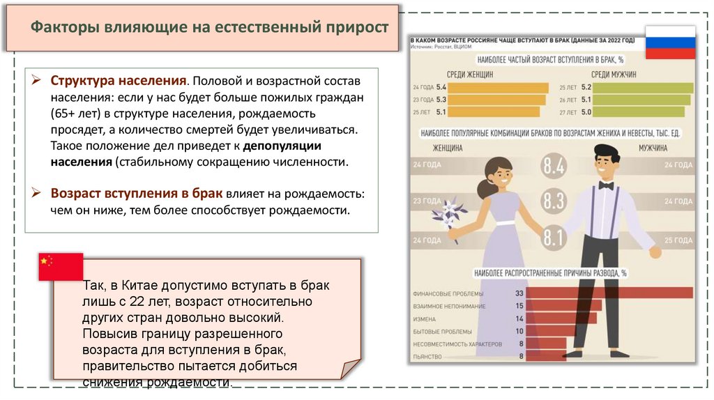 Факторы влияющие на естественный приростСтруктура населения. Половой и возрастной состав
