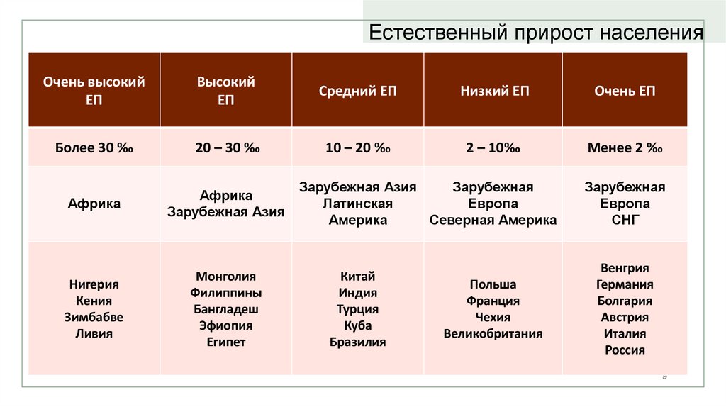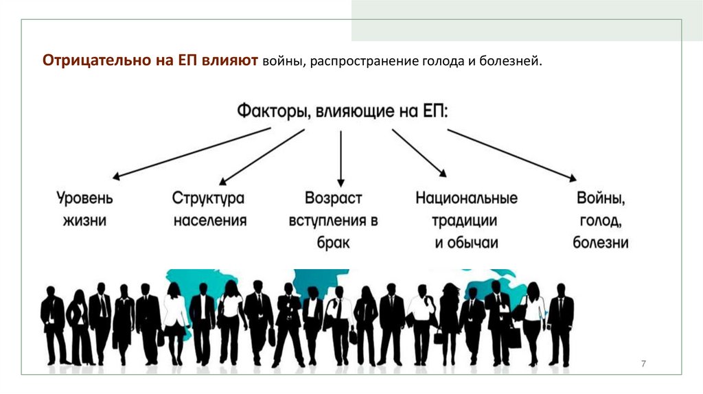Отрицательно на ЕП влияют войны, распространение голода и болезней.7