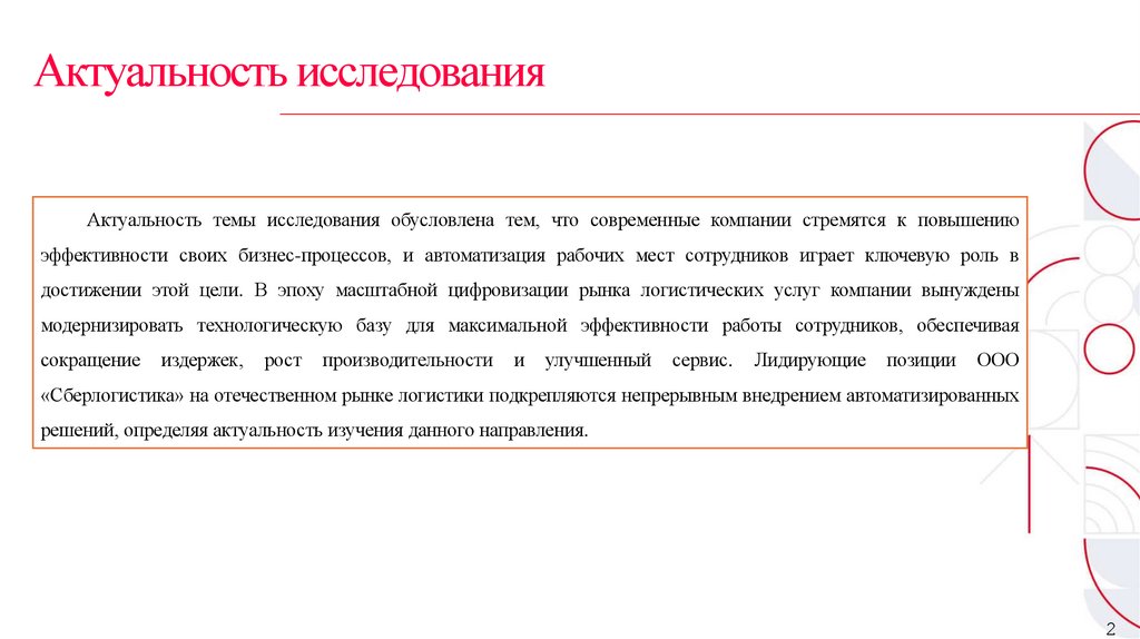 Актуальность исследованияАктуальность темы исследования обусловлена тем, что современные компании стремятся к повышению