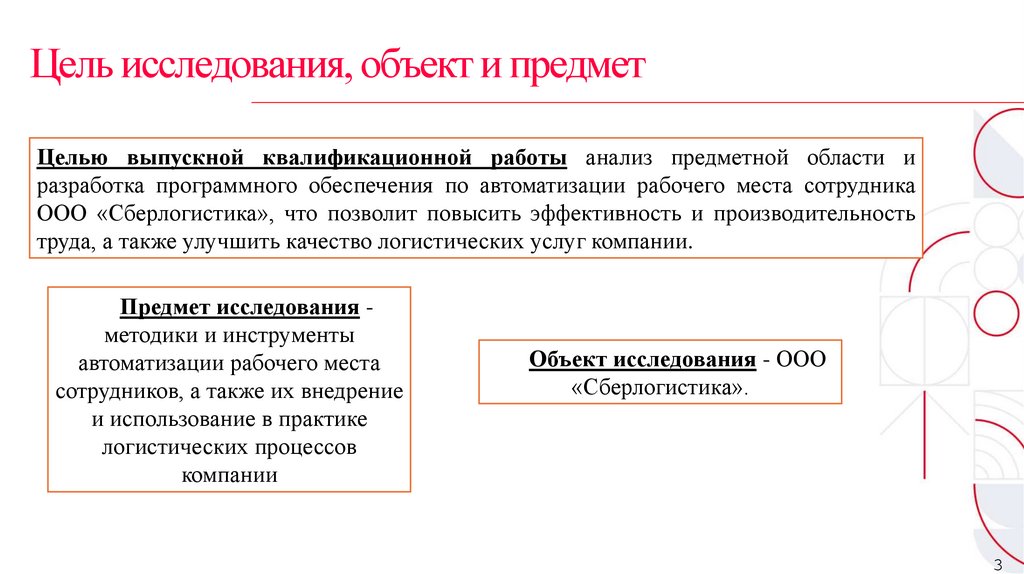 Цель исследования, объект и предметЦелью выпускной квалификационной работы анализ предметной области и