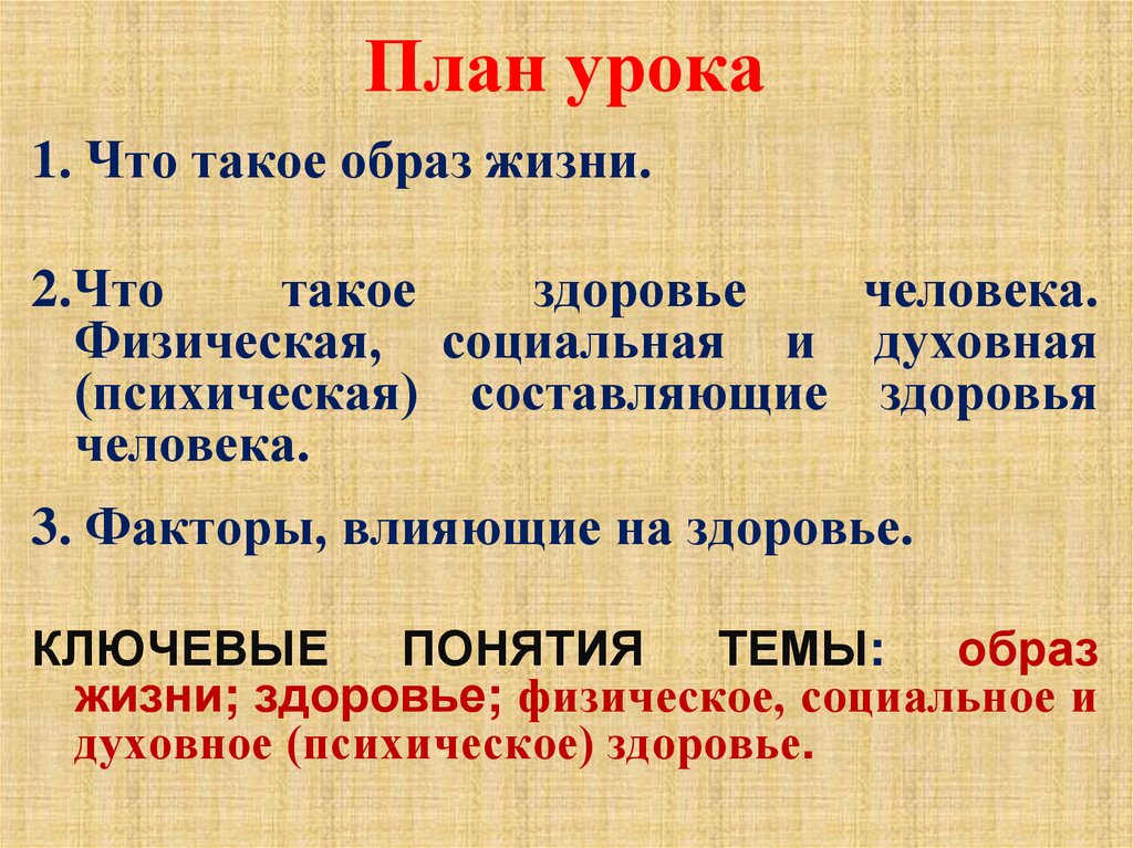 План урока1. Что такое образ жизни.
