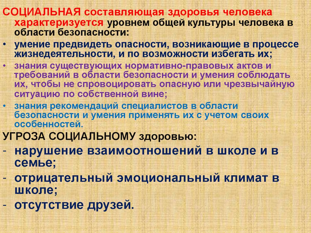 человека (его социальное здоровье).