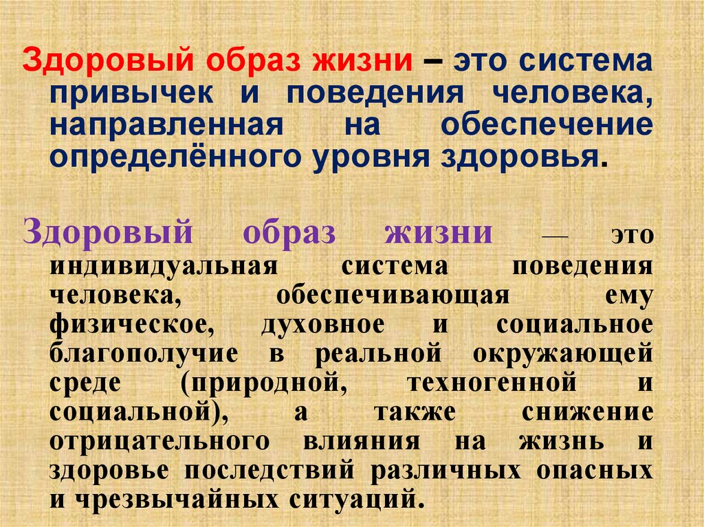 Здоровый образ жизни – это системапривычек и поведения человека,