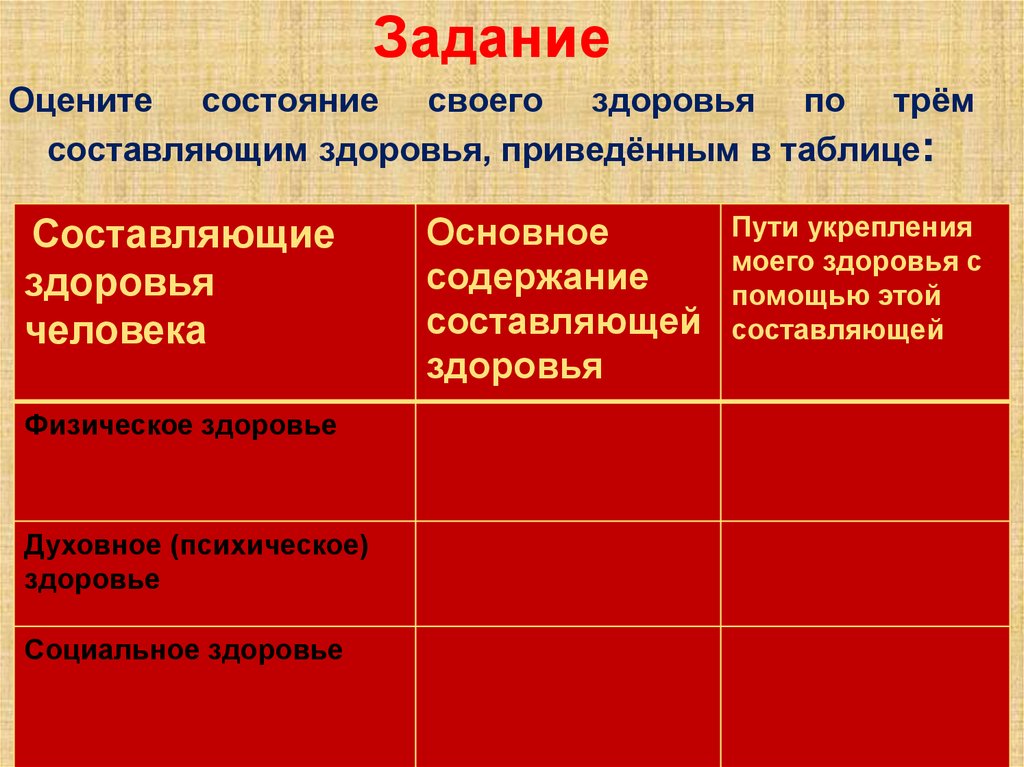 ЗаданиеОцените состояние своего здоровья по трём