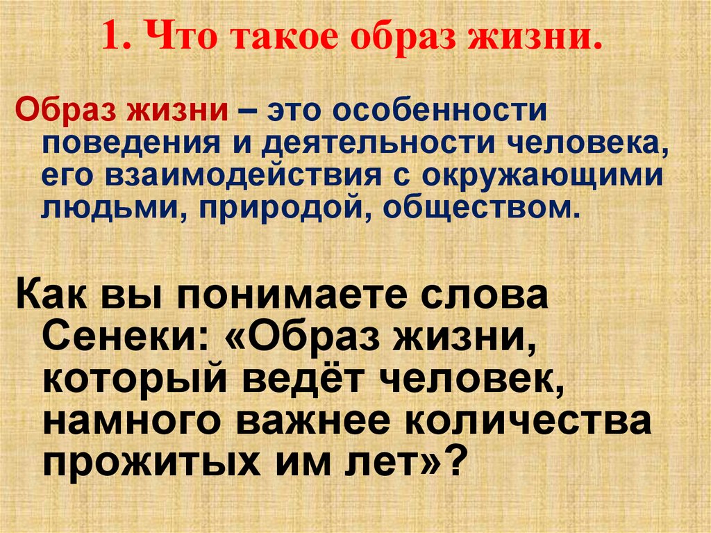 1. Что такое образ жизни.Образ жизни – это особенности