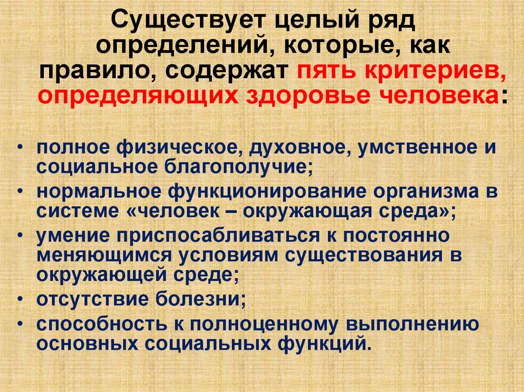 жизни; здоровье; физическое, социальное и