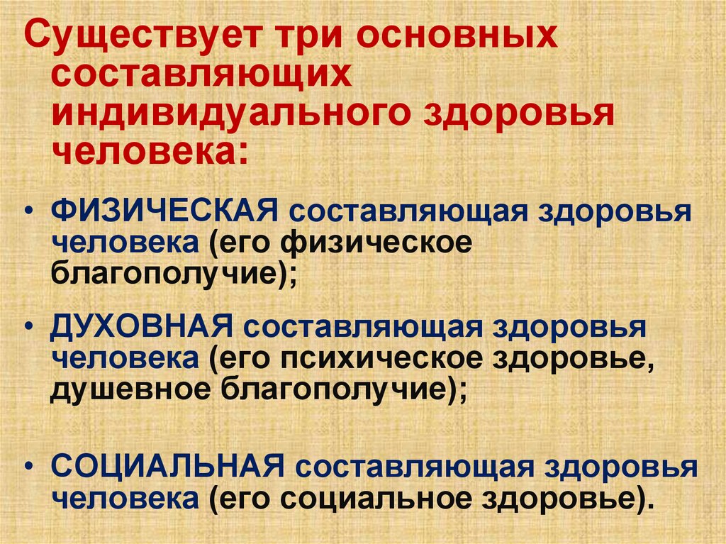 составляющие здоровья человека.