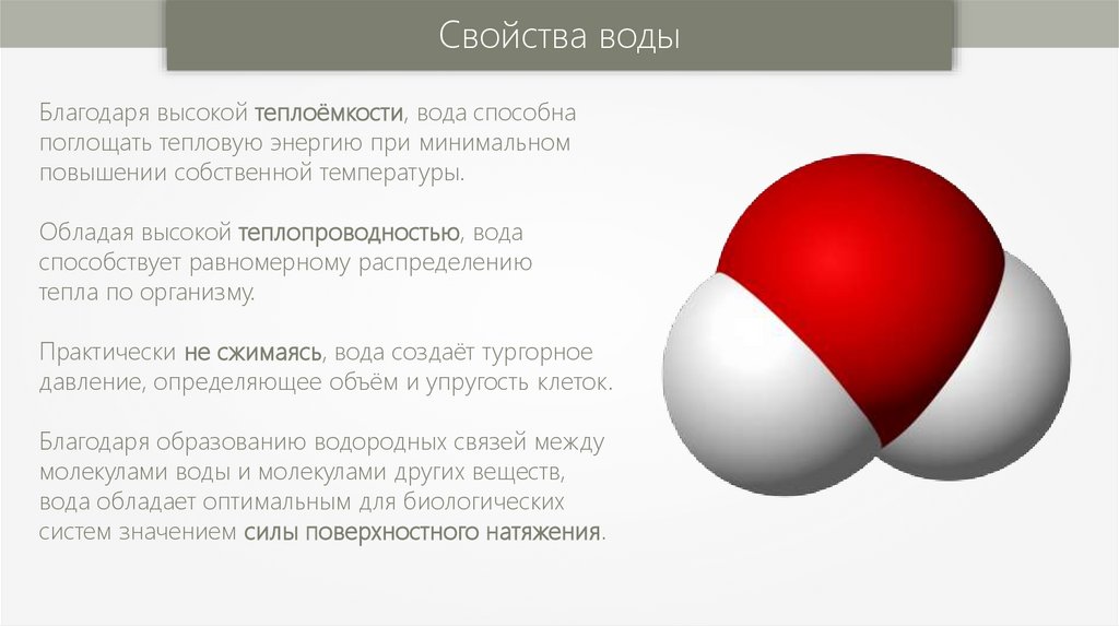 Свойства водыБлагодаря высокой теплоёмкости, вода способна