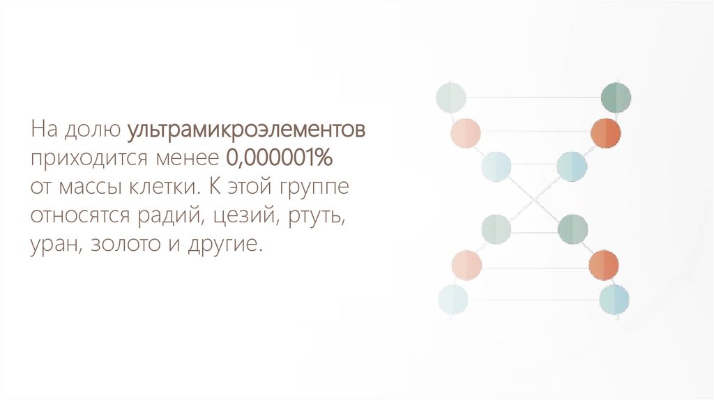 На долю ультрамикроэлементовприходится менее 0,000001%