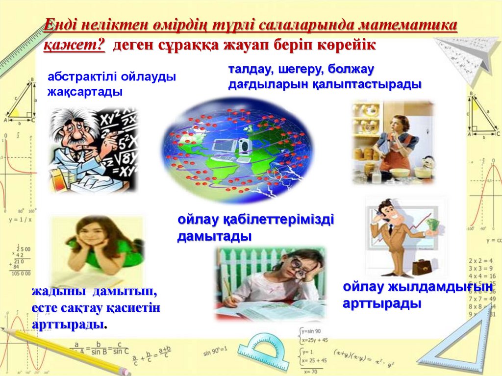 Енді неліктен өмірдің түрлі салаларында математикақажет? деген сұраққа жауап беріп көрейік