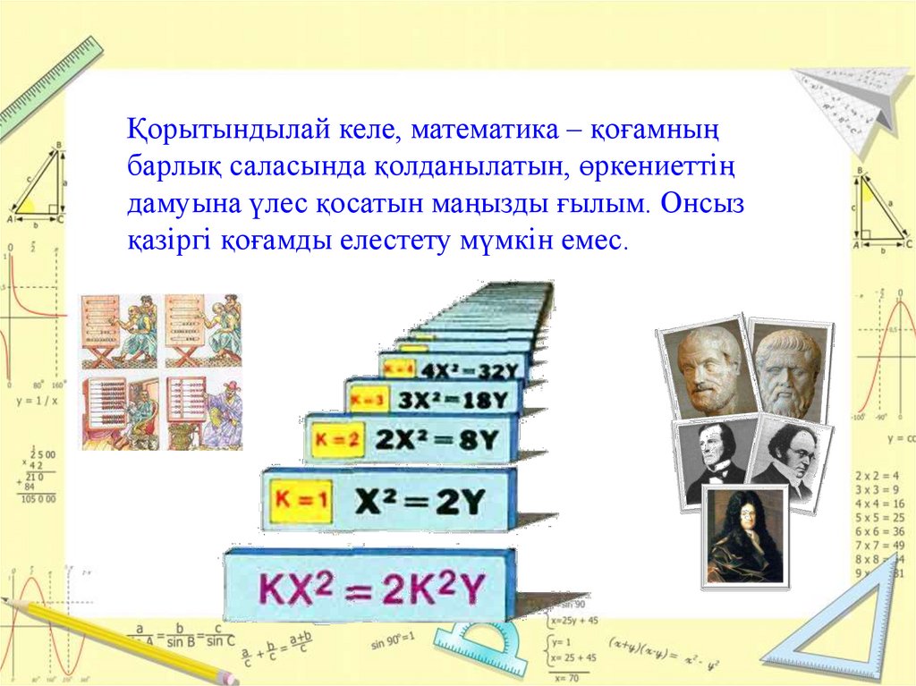 Қорытындылай келе, математика – қоғамныңбарлық саласында қолданылатын, өркениеттің