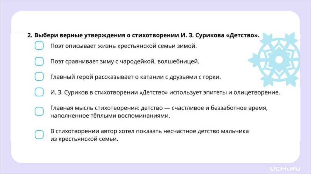 Прочитайте стихотворениеИ. З. Сурикова «Детство»
