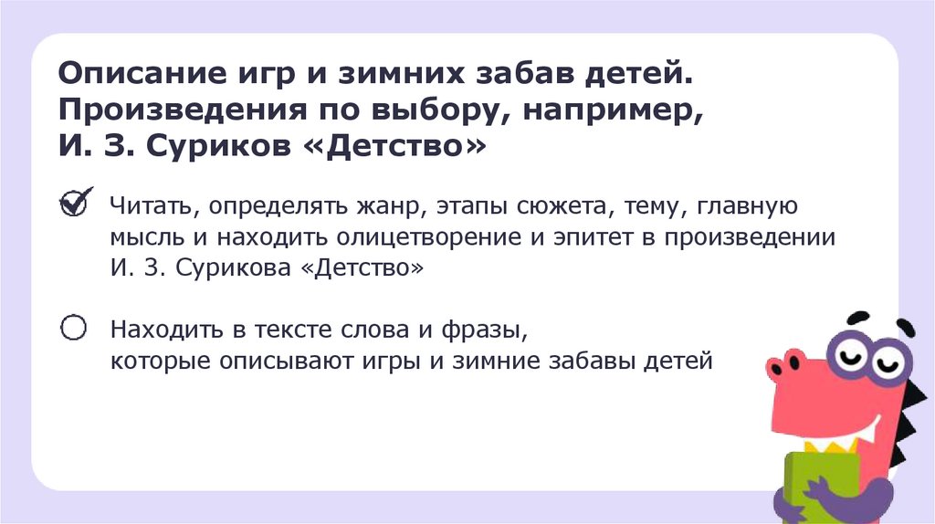 Литературное чтение_ 2 класс_ Описание игр и зимних забав детей. Произведения по выбору_ например_ И. З. Суриков «Детство» (1)