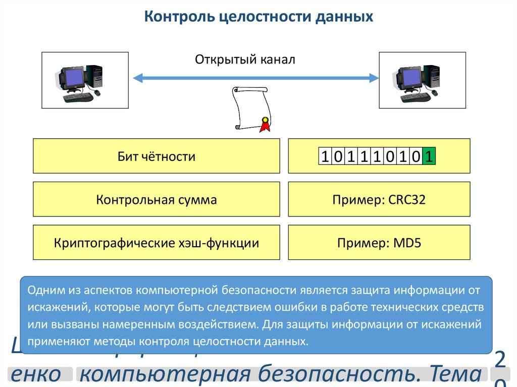 контроле целостности делает подделывание нецелесообразным в большинстве