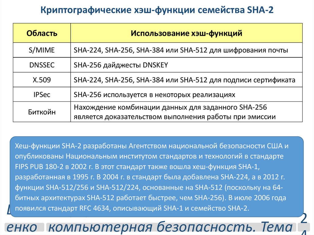 применяются в различных сетевых протоколах, в частности, в протоколах TLS и его