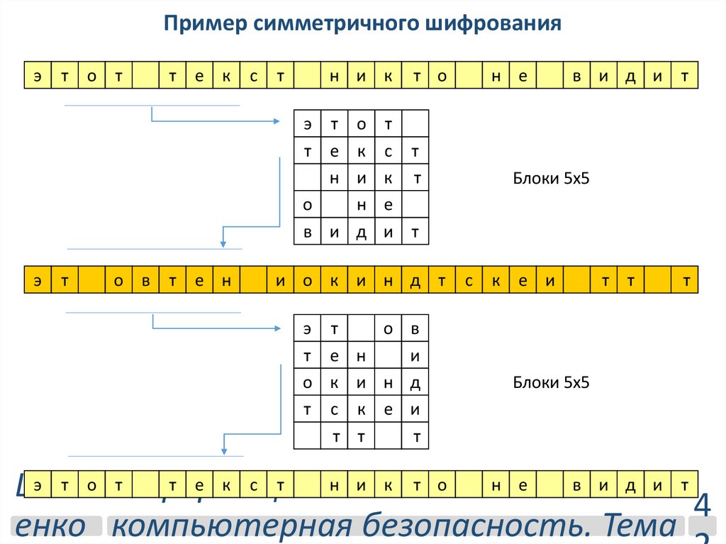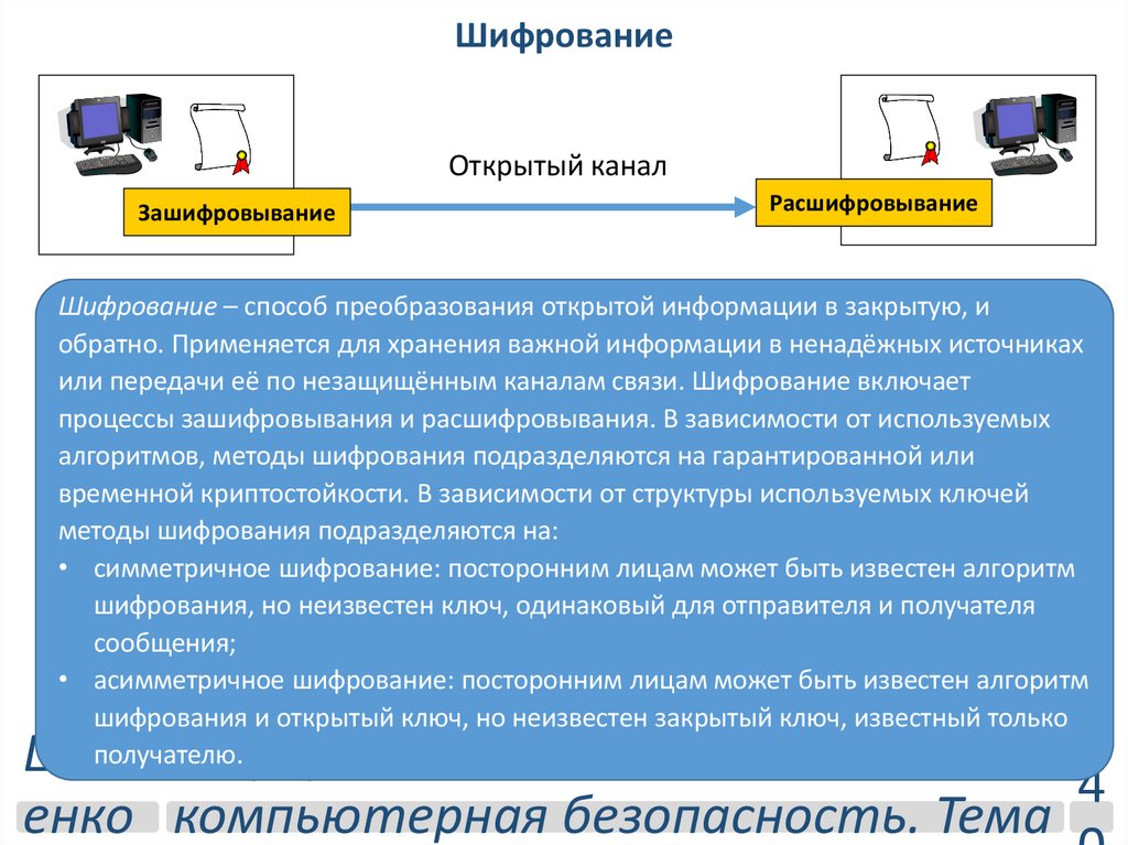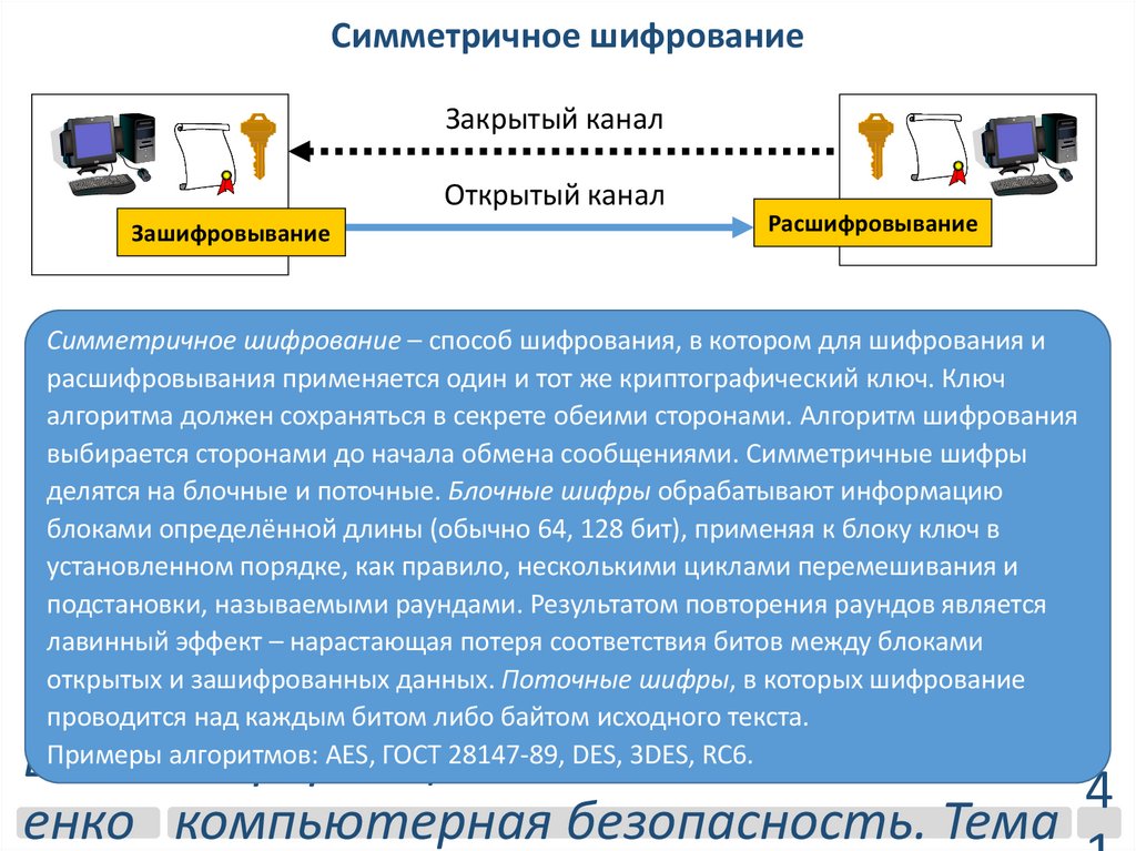 сообщения. Для расшифровки сообщения используется секретный ключ.