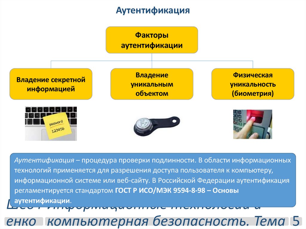 информационной системе или веб-сайту. В Российской Федерации аутентификация