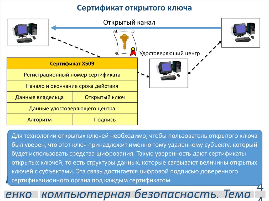 регламентируется стандартом ГОСТ Р ИСО/МЭК 9594-8-98 – Основы