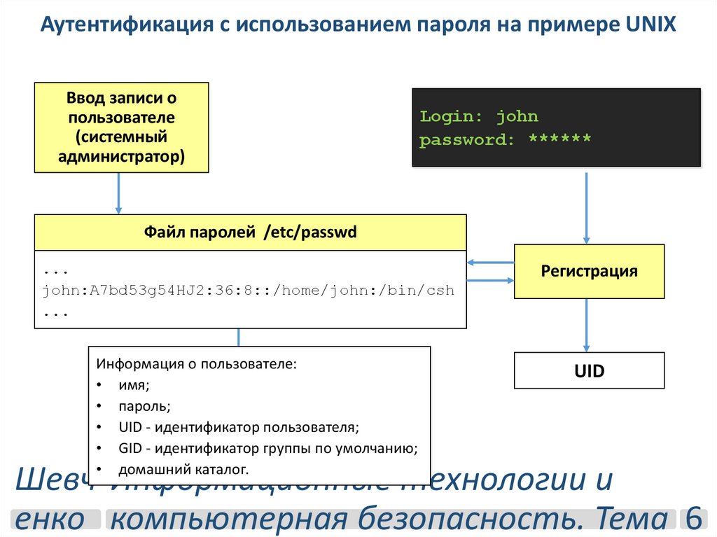 Аутентификация с использованием пароля на примере UNIXВвод записи о