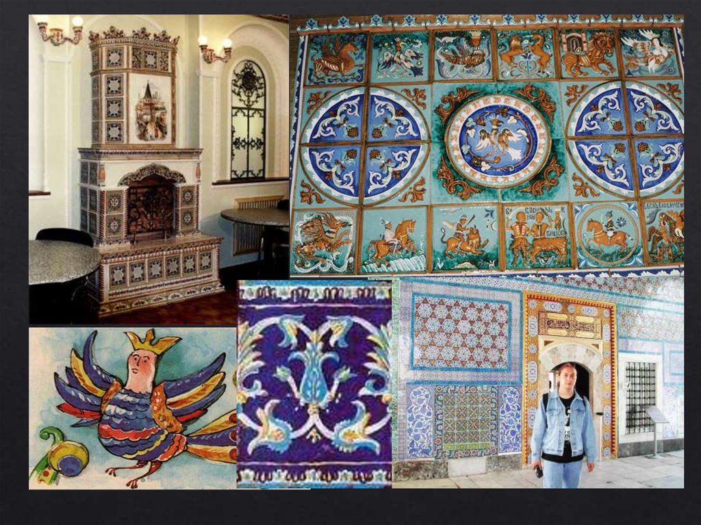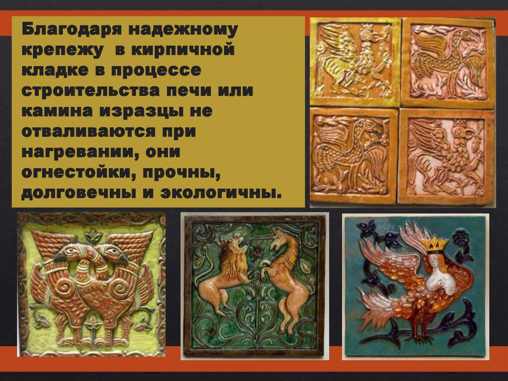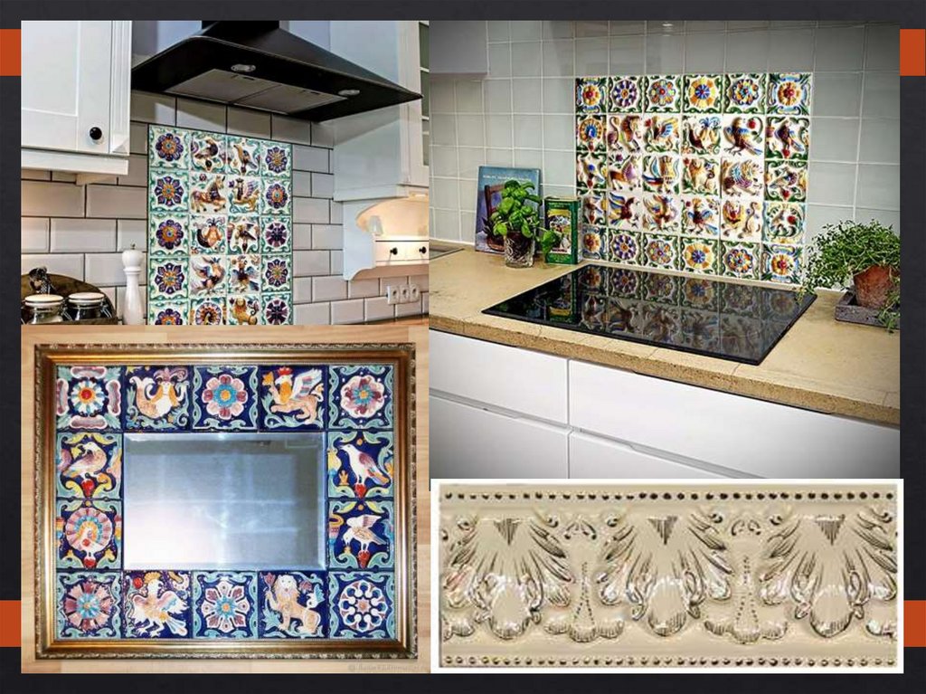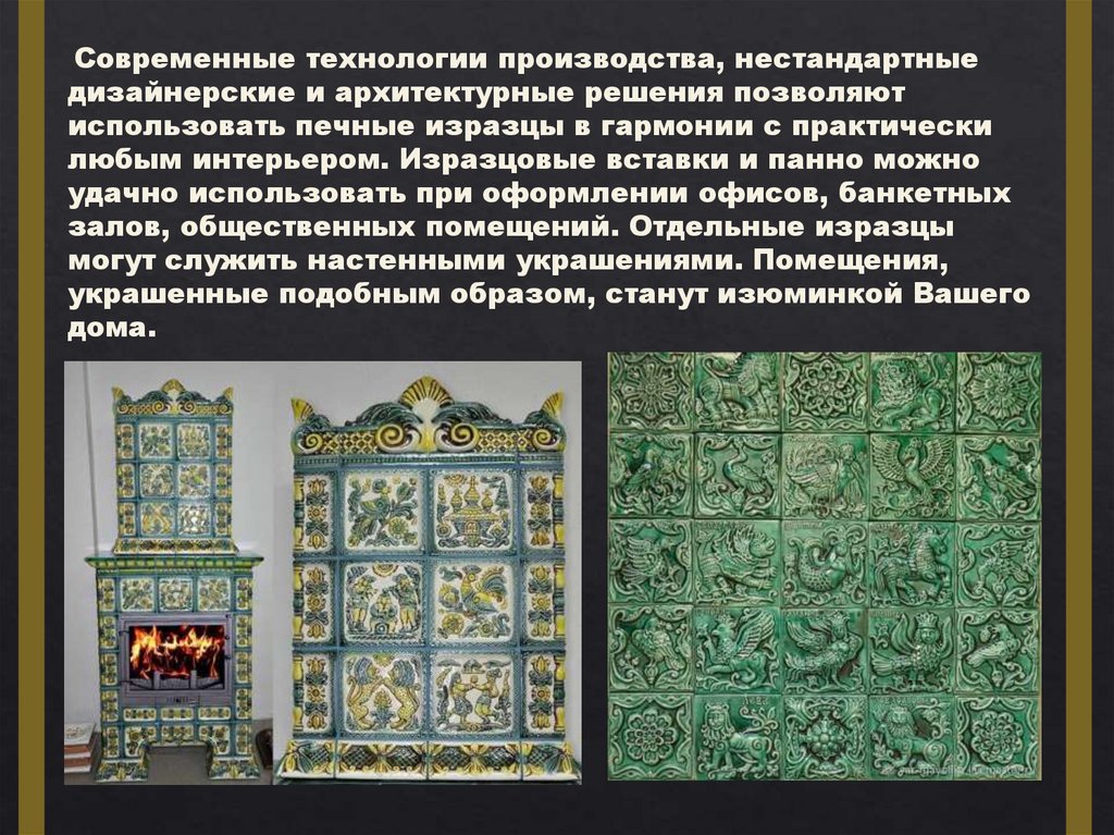 любым интерьером. Изразцовые вставки и панно можно