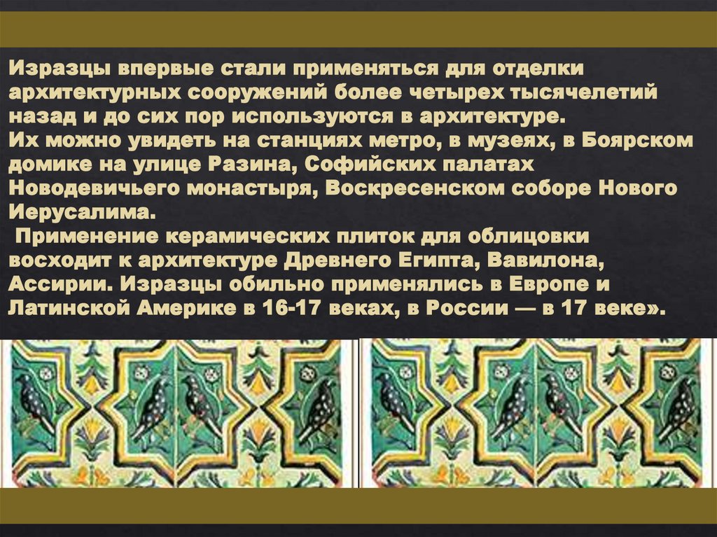 Изразец - архитектурно-художественная керамика,