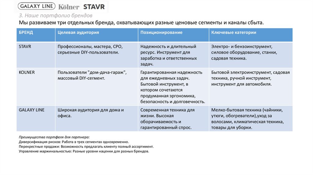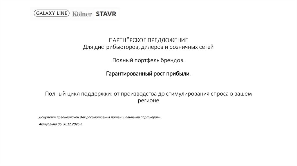 1. ПАРТНЁРСКОЕ ПРЕДЛОЖЕНИЕ Для дистрибьюторов, дилеров и розничных сетей Полный портфель брендов. Гарантированный рост прибыли.