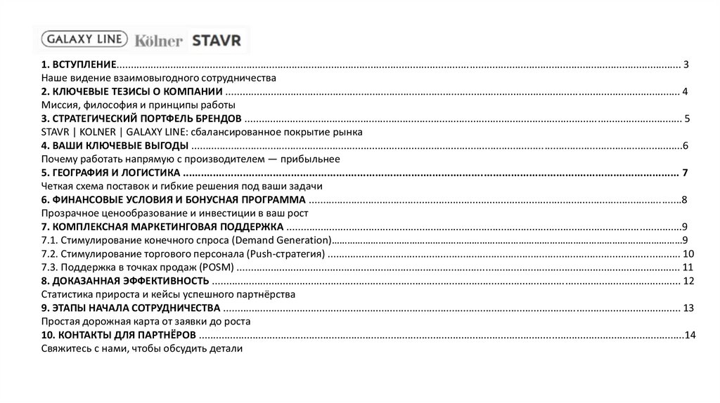 10. КОНТАКТЫ ДЛЯ ПАРТНЁРОВ ............................................................................................................................................................................14