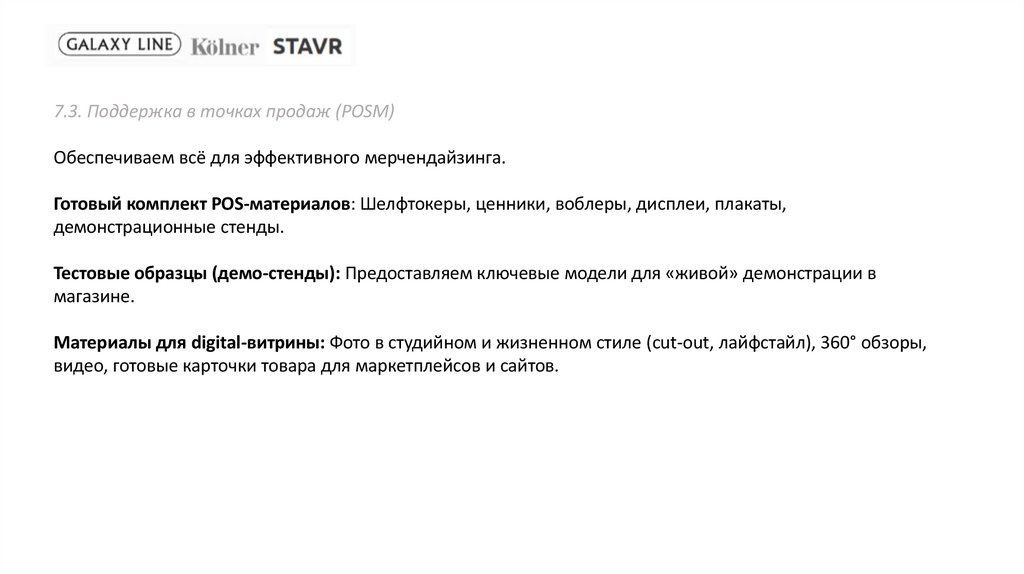 7.3. Поддержка в точках продаж (POSM)Обеспечиваем всё для эффективного мерчендайзинга.