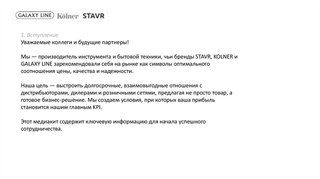 1. ВступлениеУважаемые коллеги и будущие партнеры!