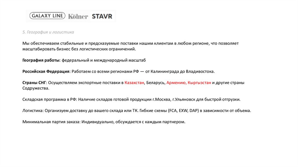 Гибкие логистические и финансовые условия.