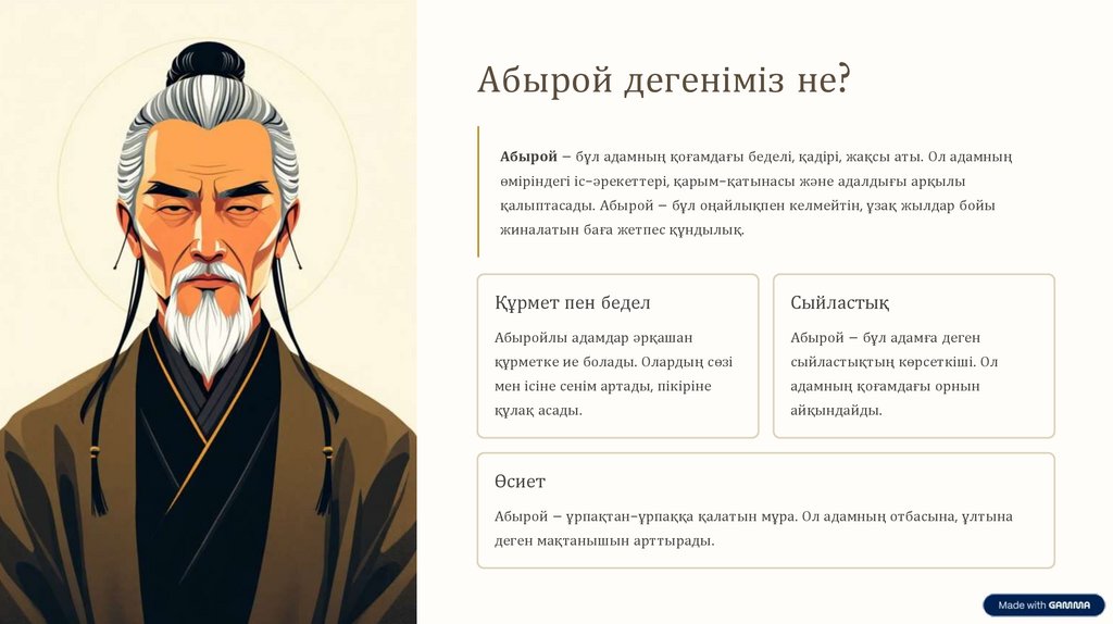 Абырой дегеніміз не?Абырой – бұл адамның қоғамдағы беделі, қадірі, жақсы аты. Ол адамның