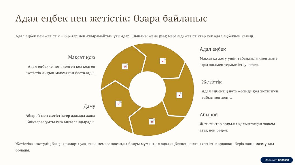 Адал еңбек пен жетістік: Өзара байланысАдал еңбек пен жетістік – бір-бірінен ажырамайтын ұғымдар. Шынайы және ұзақ мерзімді жетістіктер тек адал еңбекпен келеді.