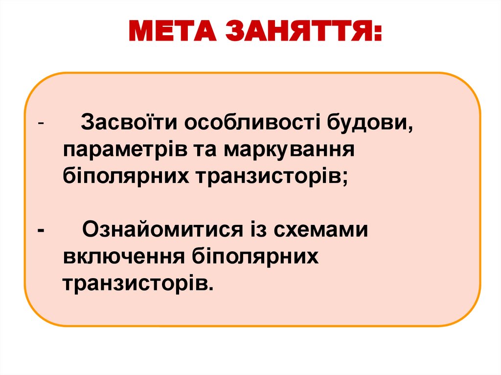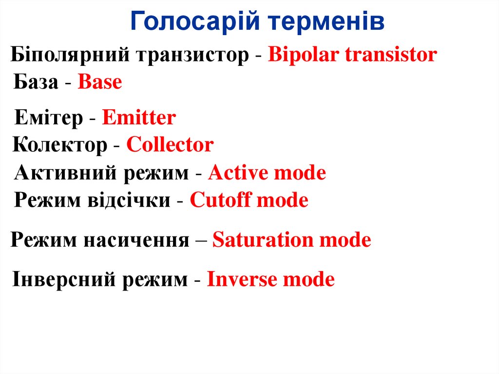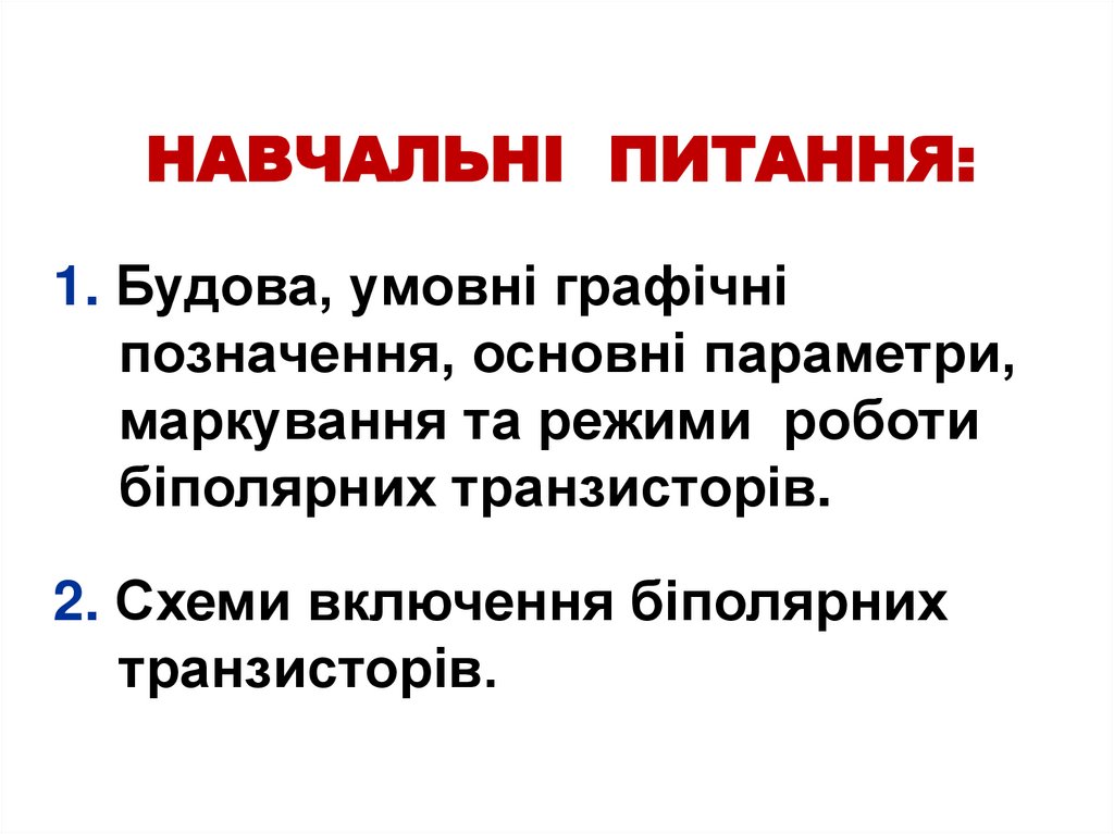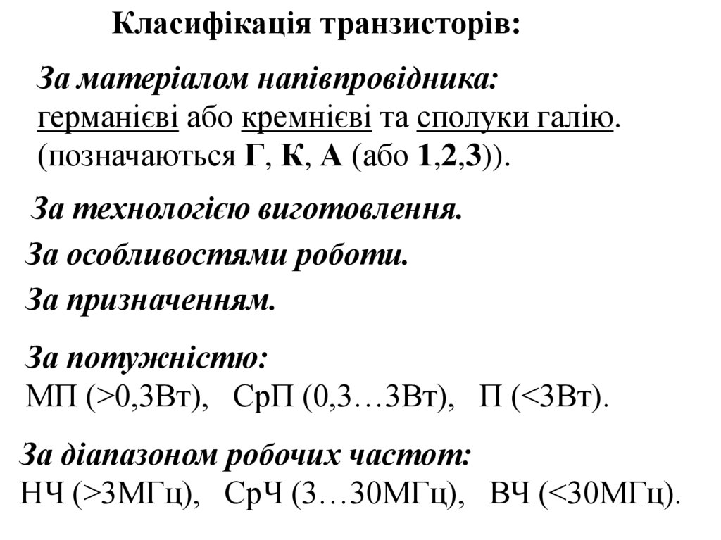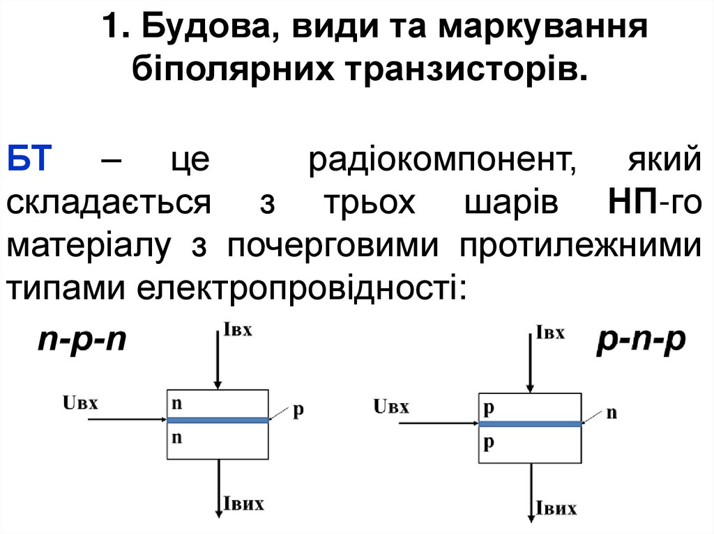 1. Будова, види та маркуваннябіполярних транзисторів.