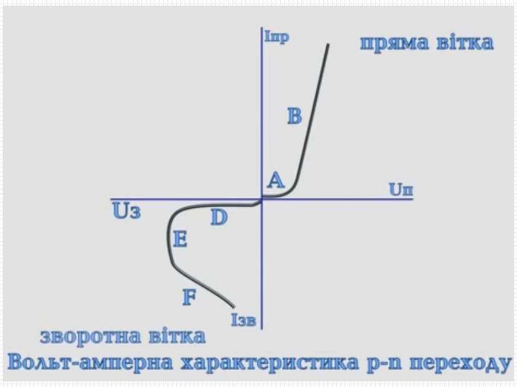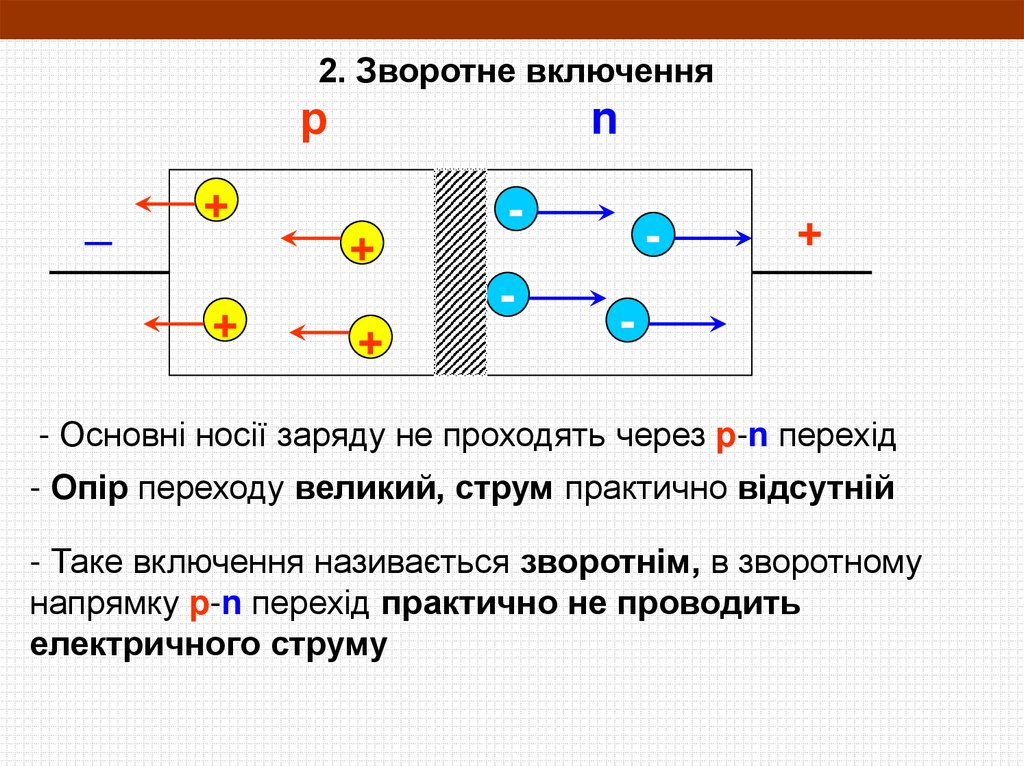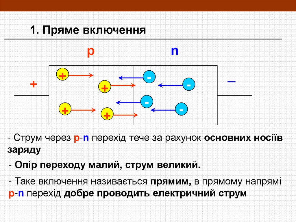 - Струм через p-n перехід тече за рахунок основних носіїв