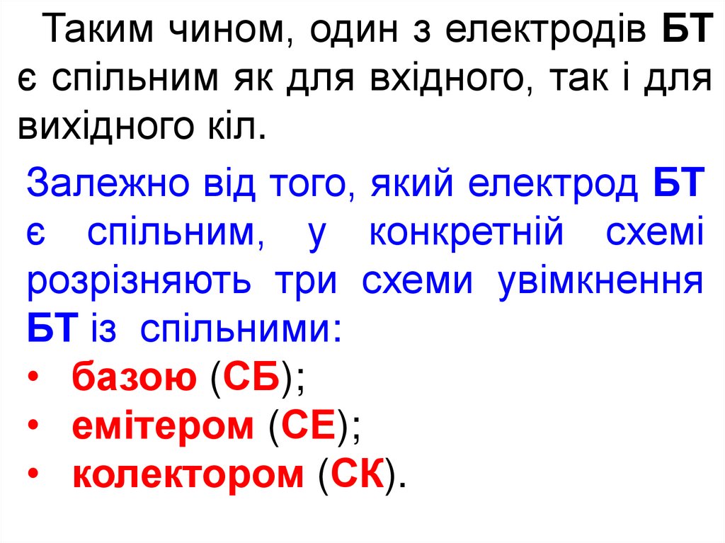 Таким чином, один з електродів БТє спільним як для вхідного, так і для