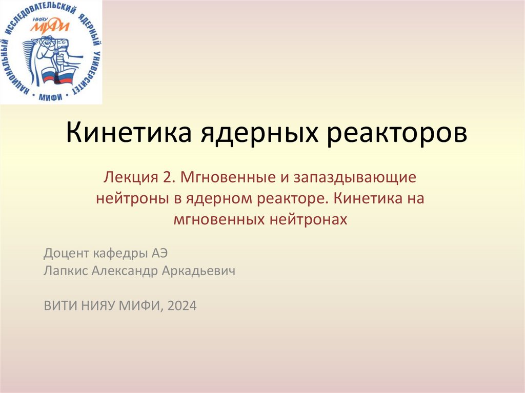 Лекция 2. Мгновенные и запаздывающиенейтроны в ядерном реакторе. Кинетика на