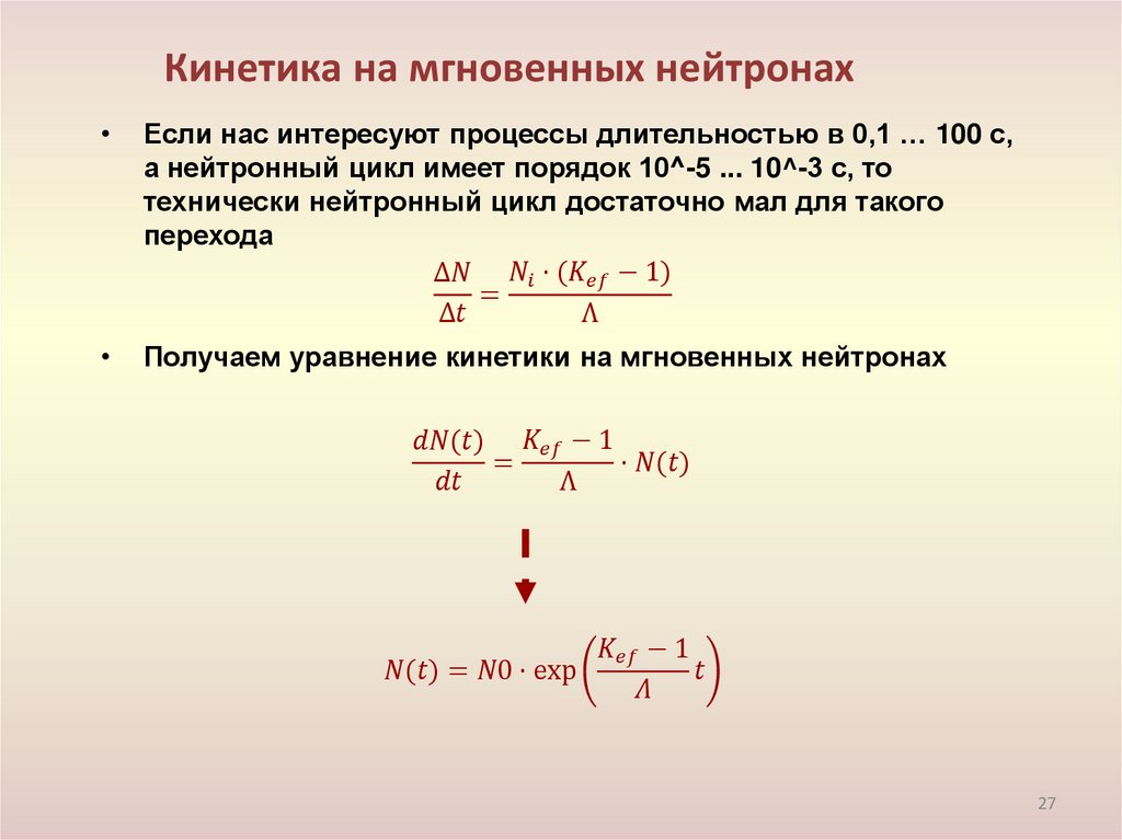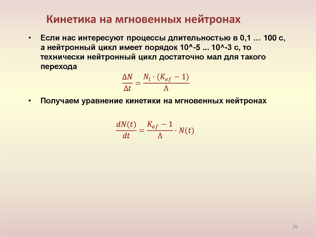 • Кинетика реактора без учёта запаздывающих