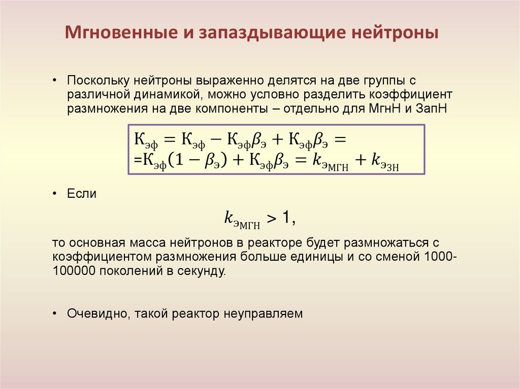 • Мгновенные и запаздывающие нейтроны в