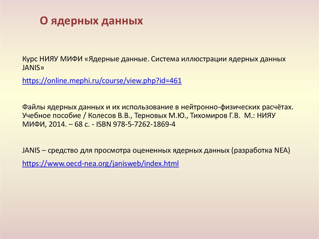 О ядерных данныхКурс НИЯУ МИФИ «Ядерные данные. Система иллюстрации ядерных данных