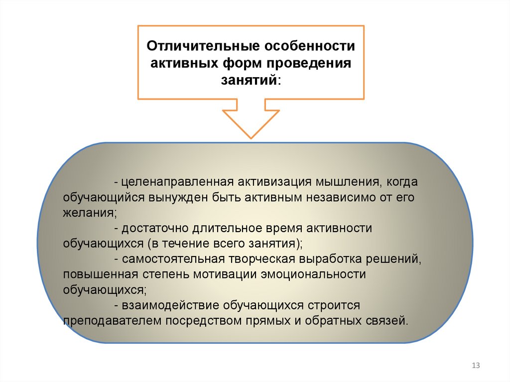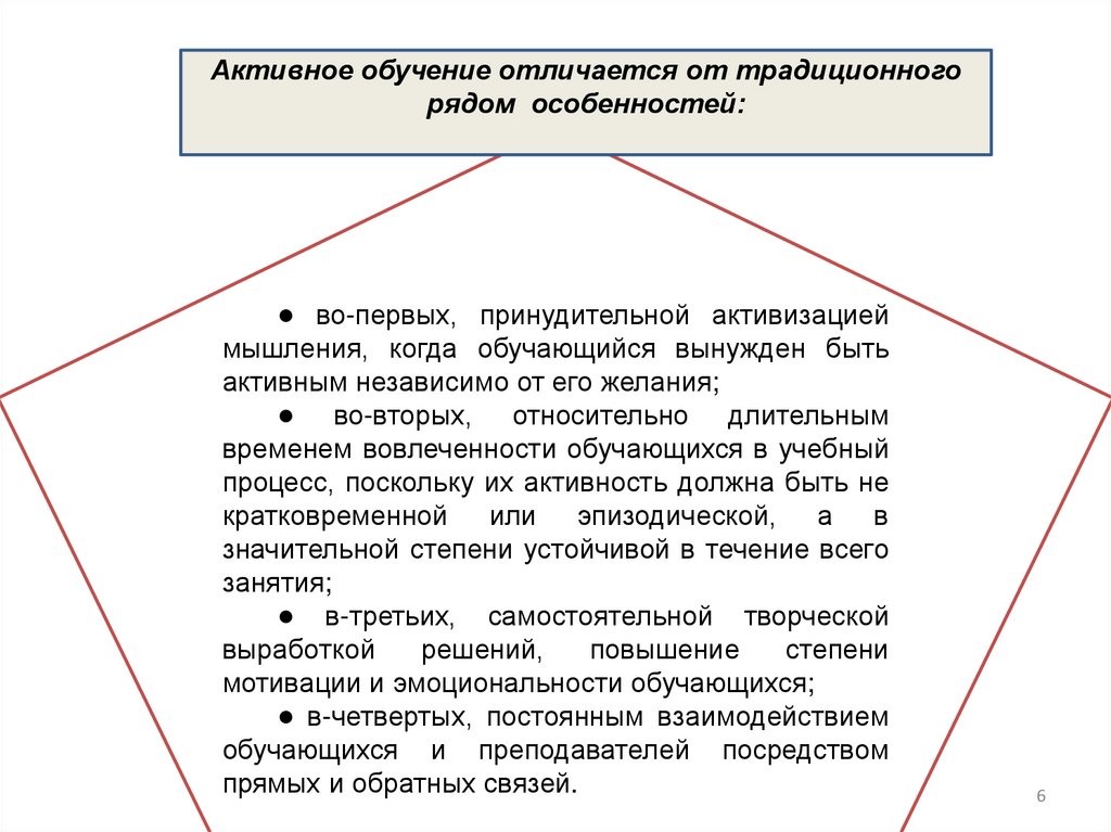 Активное обучение отличается от традиционногорядом особенностей: