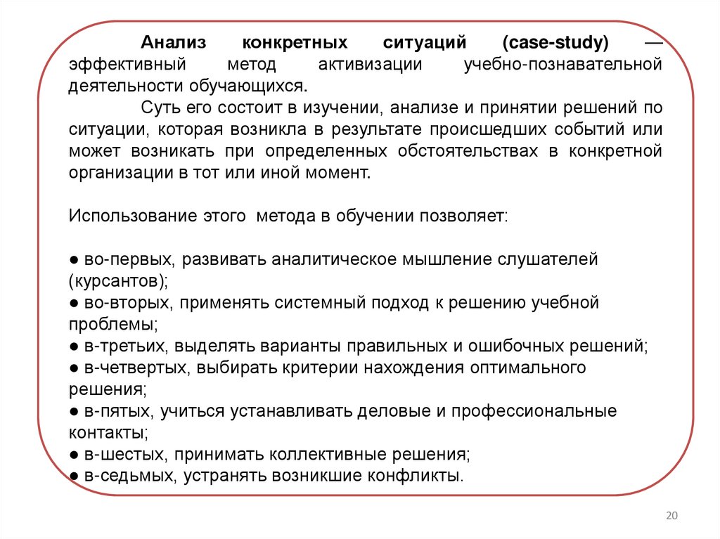 ● семинар с анализом конкретных ситуаций;