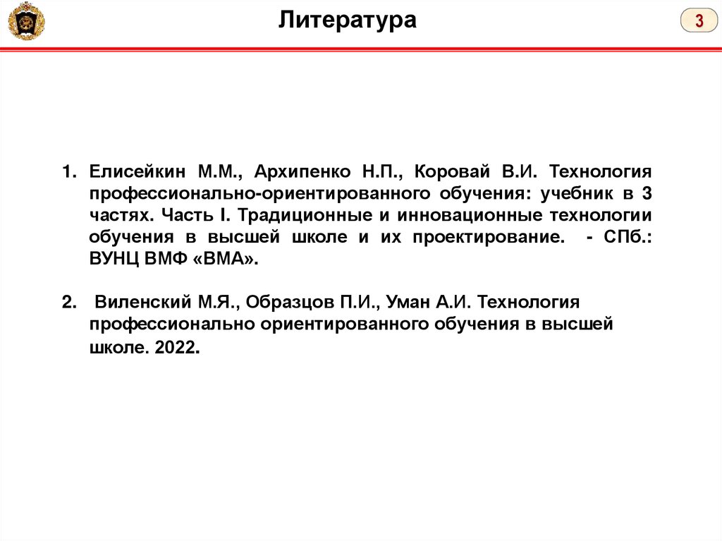 Литература1. Елисейкин М.М., Архипенко Н.П., Коровай В.И. Технология