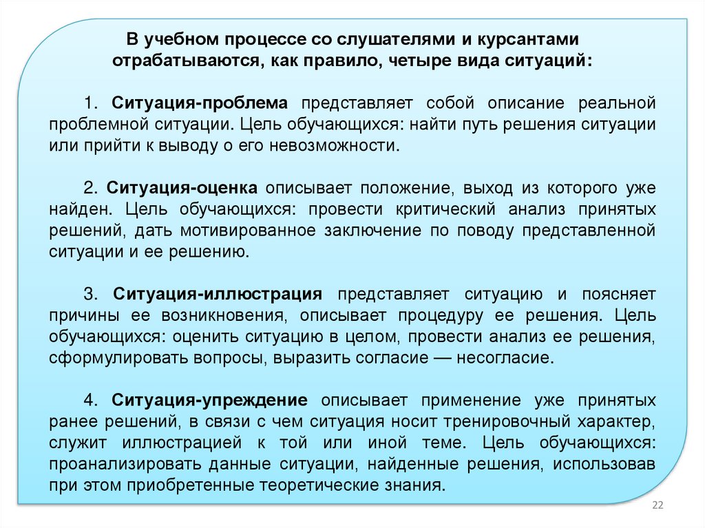 ранее решений, в связи с чем ситуация носит тренировочный характер,