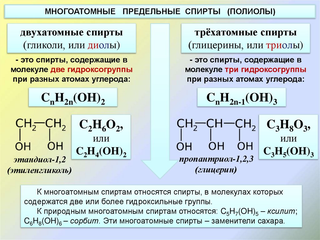 К многоатомным спиртам относятся спирты, в молекулах которых