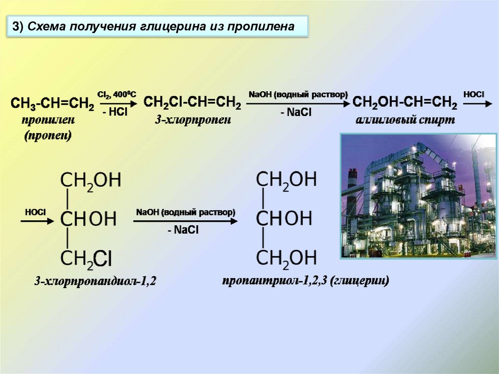 СПОСОБЫ ПОЛУЧЕНИЯ ГЛИЦЕРИНА1) Гидролиз галогенпроизводных алканов