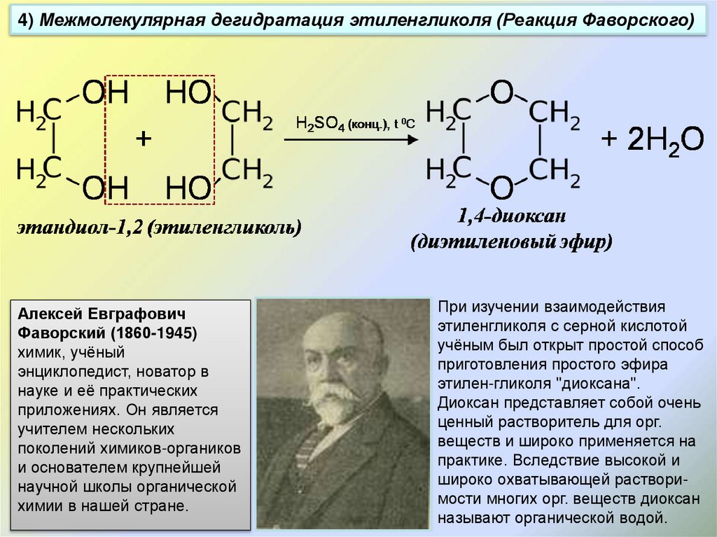 4) Межмолекулярная дегидратация этиленгликоля (Реакция Фаворского)Алексей Евграфович