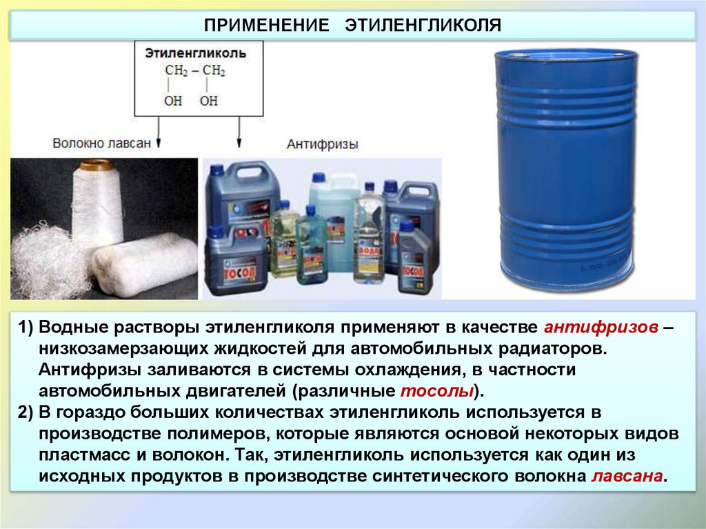 пластмасс и волокон. Так, этиленгликоль используется как один из